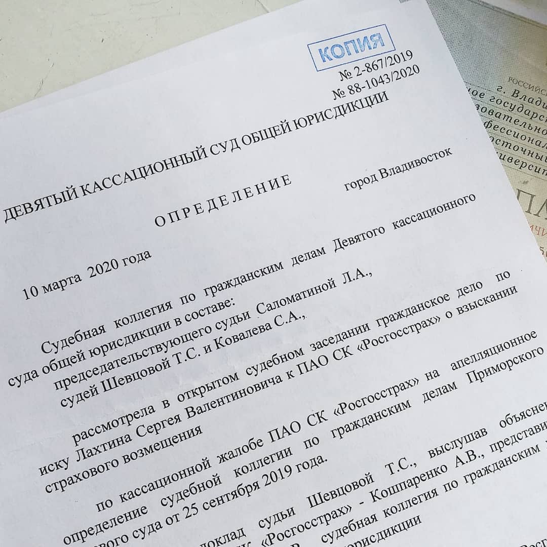 Росгосстрах не согласился с апелляционным определением Приморского краевого суда и подал кассационную жалобу.