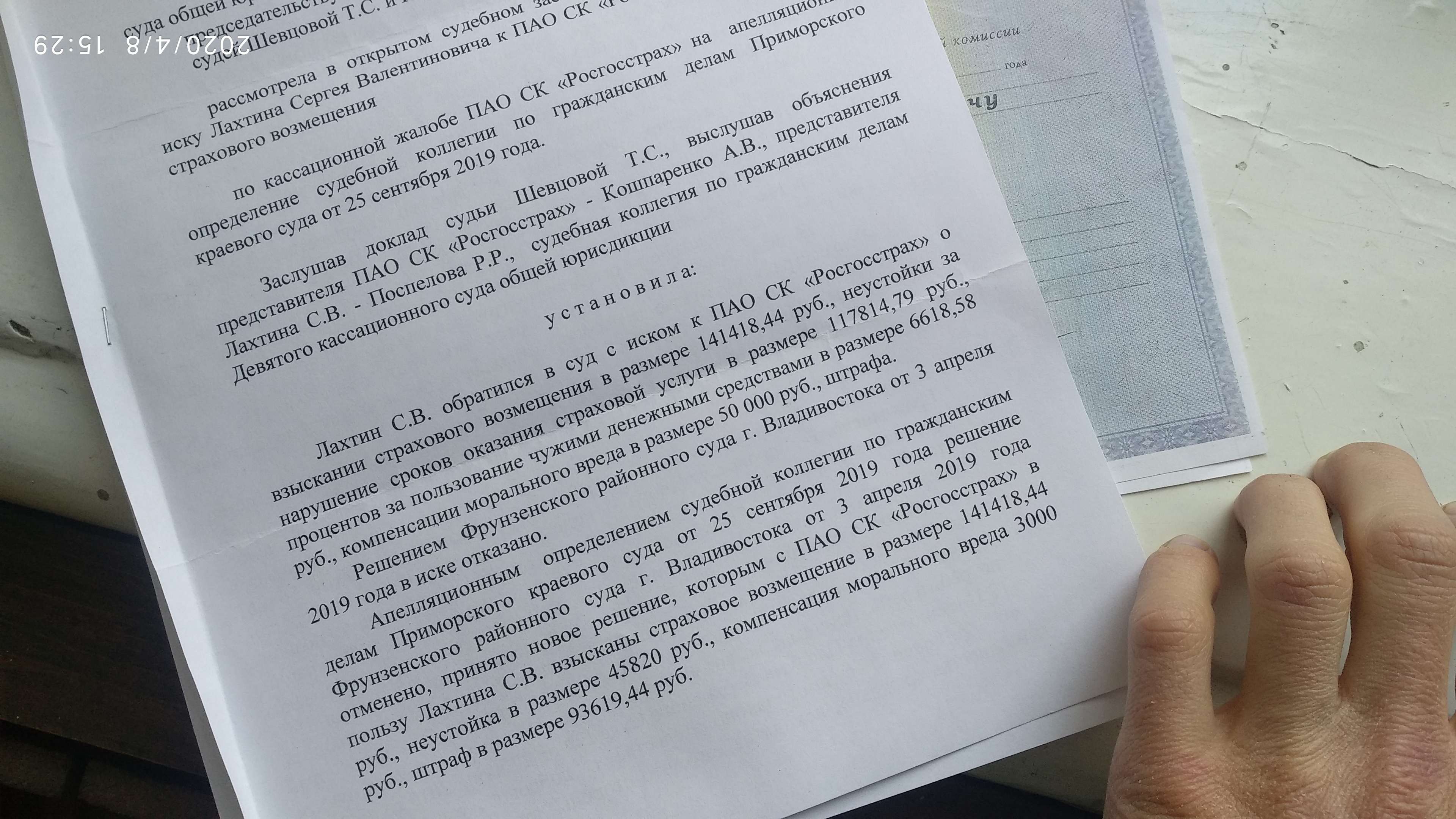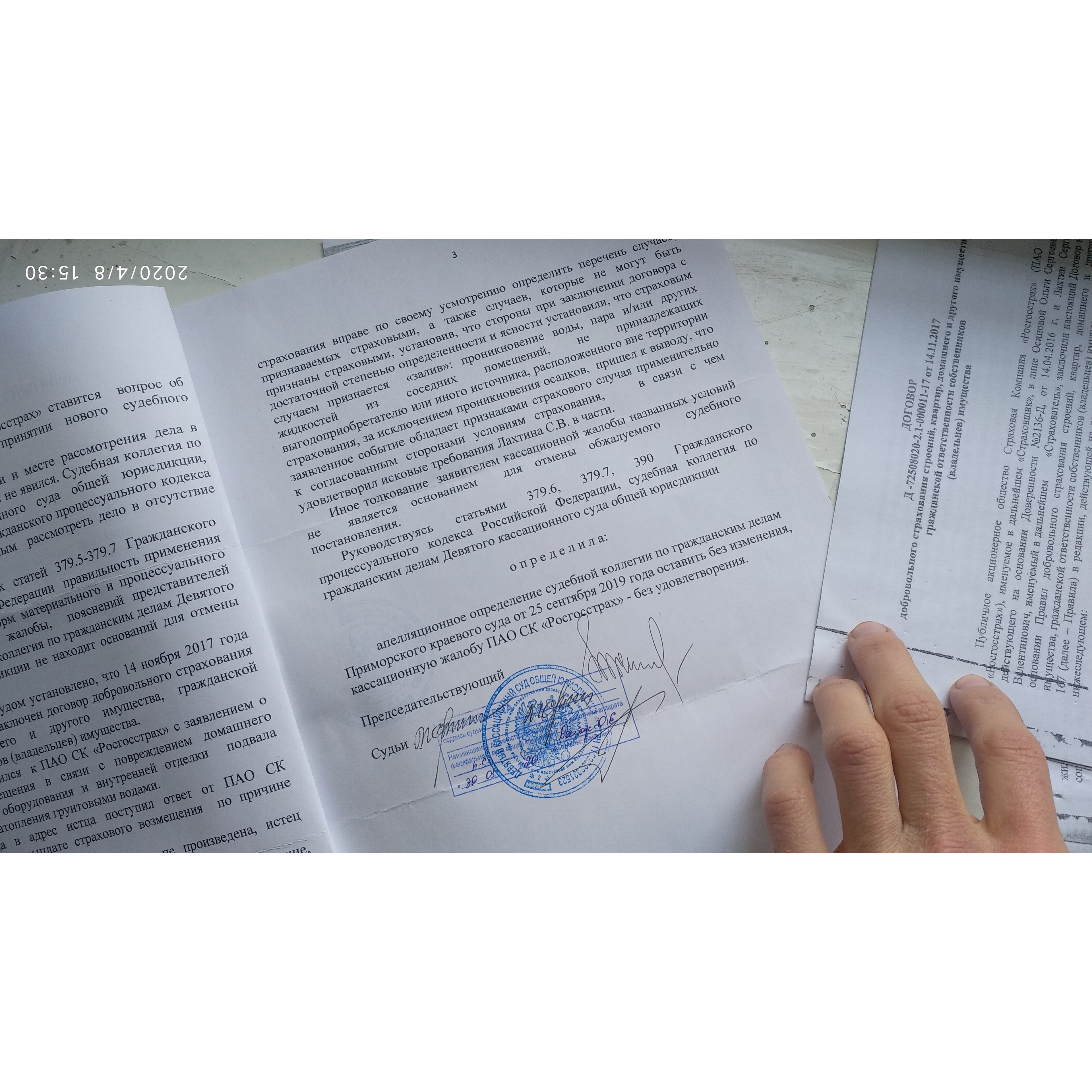 Росгосстрах не согласился с апелляционным определением Приморского краевого суда и подал кассационную жалобу.
